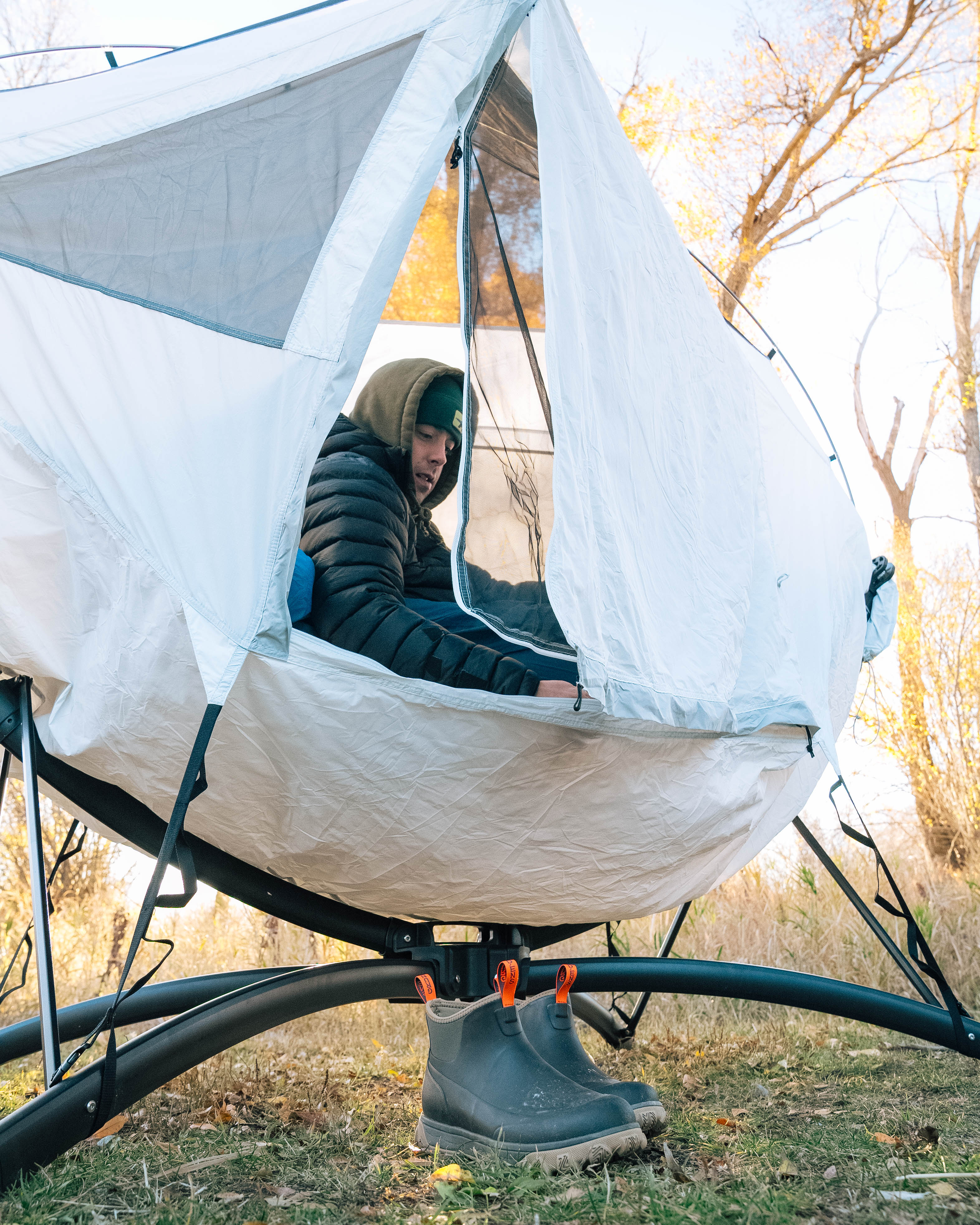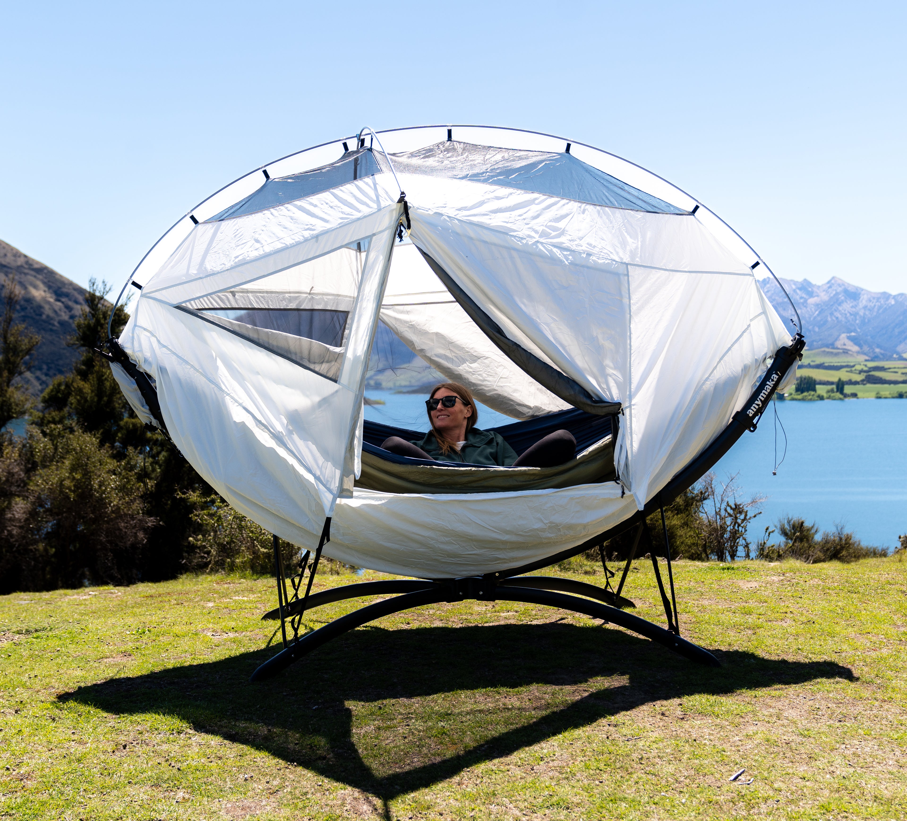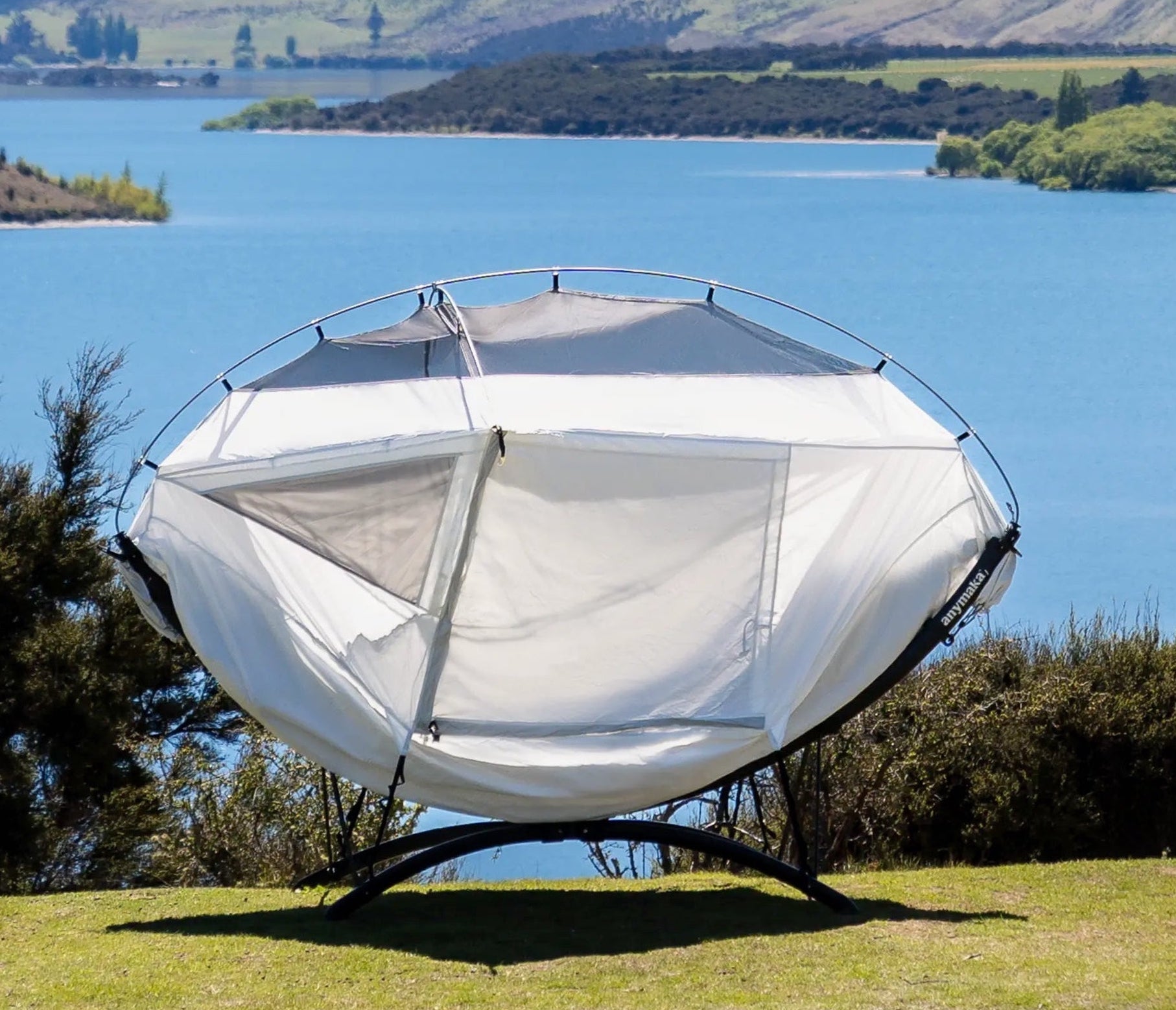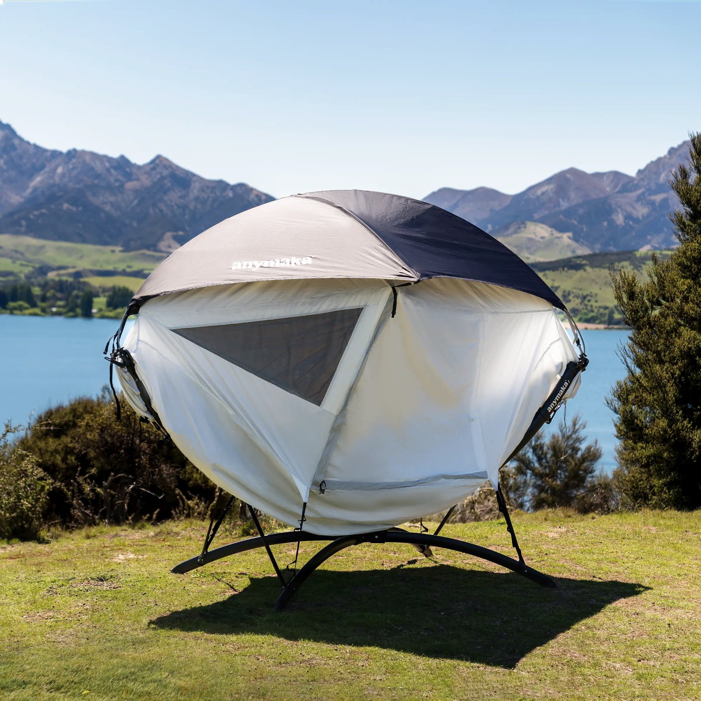 La tienda de campaña para hamaca anymaka, pionera en su categoría, transforma tu hamaca en un campamento base para acampar suspendido. Perfecta para llevarla en tu auto, combina la comodidad flotante de una hamaca con el refugio de una tienda de campaña.